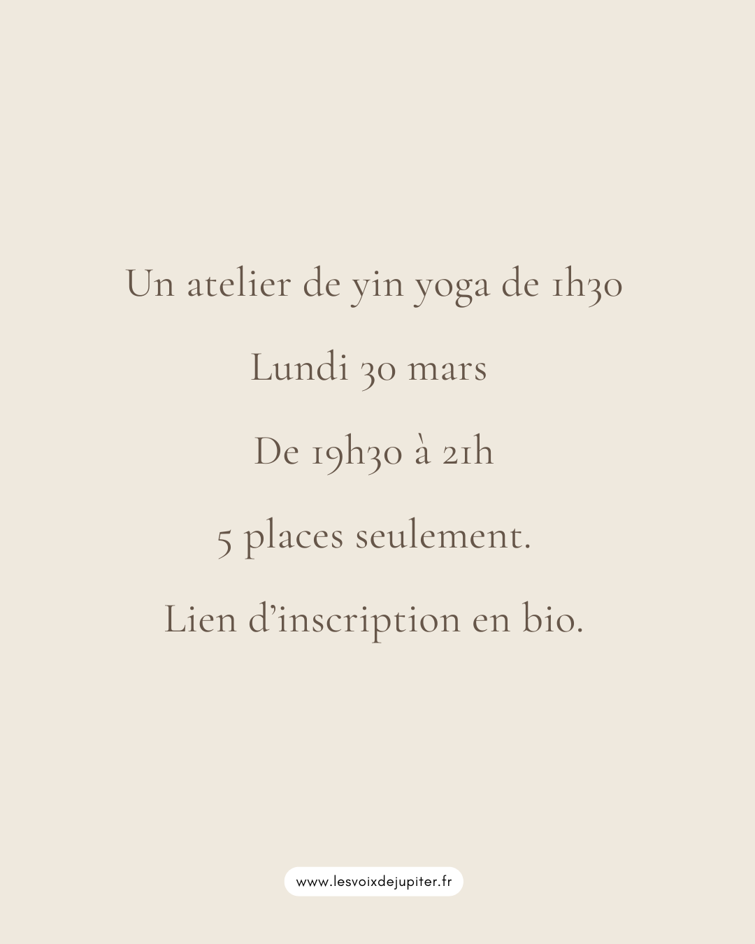Lors de la pratique de Yin Yoga, nous viendrons créer de l’espace dans le corps et soutenir la circulation de l’énergie.